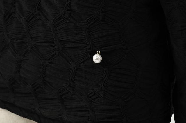 裾のさりげないパールドロップがアクセントとなり、カジュアルにもフォーマルにも使える、汎用性の高い一着です。