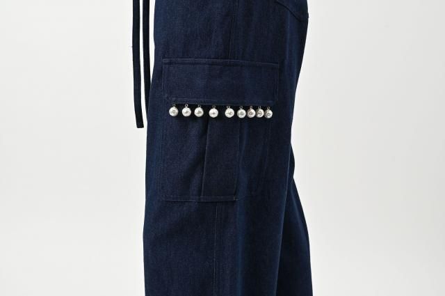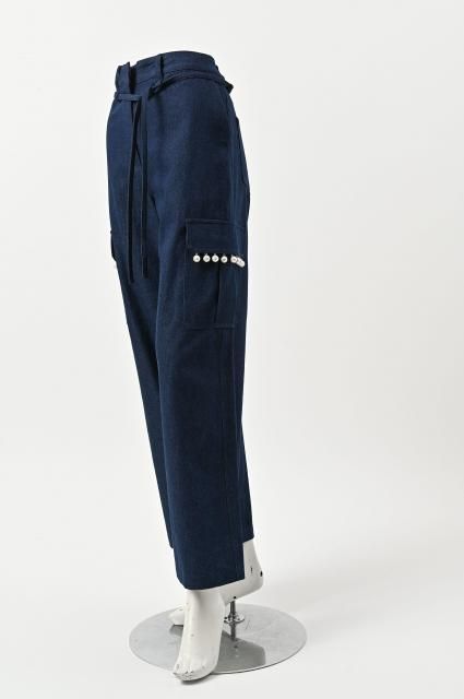 ワンウォッシュデニム素材で仕立てた、旬のムード漂うカーゴパンツ。