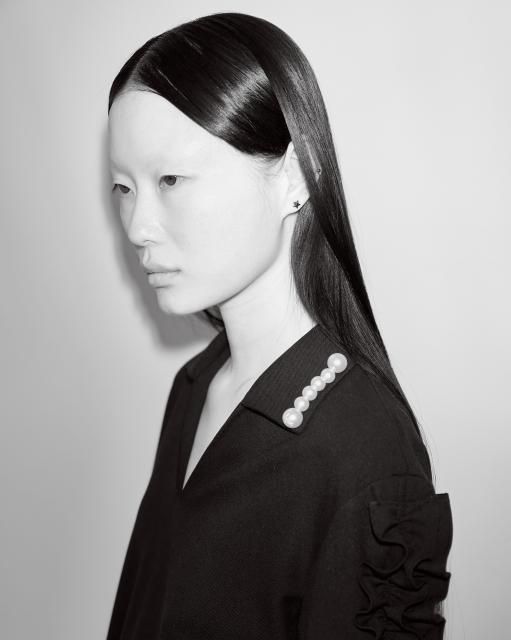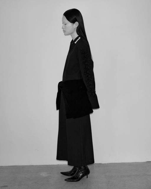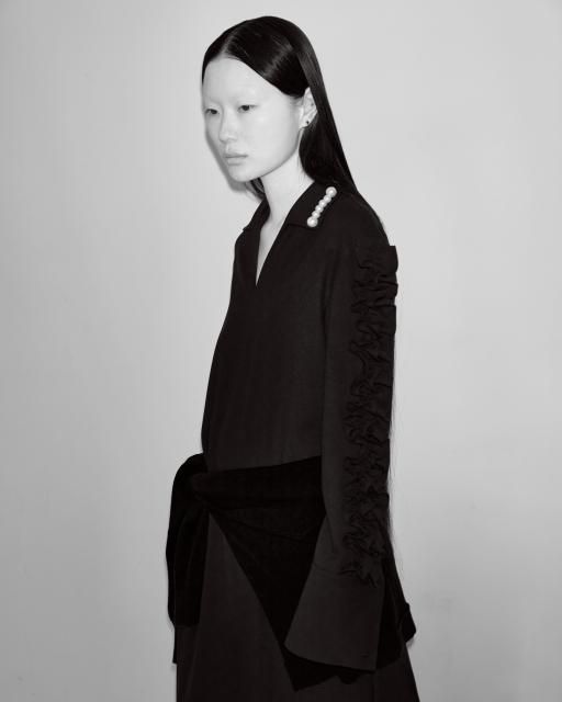 袖には立体感のあるフリルディテールを施し、モードなアクセントをプラス。